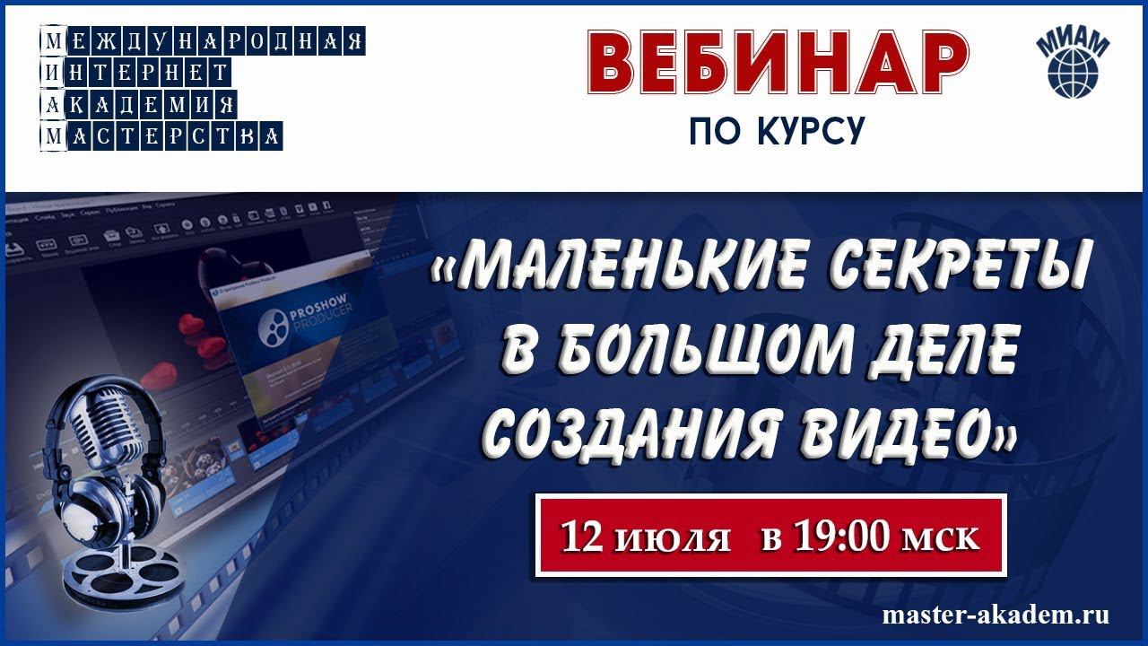 Что может быть ценнее опыта Мастера, которым он делится с учениками. Смотри и учись! ******************************************************** С вами Международная Интернет-Академия Мастерства. Мы работаем с 2013 года. Обучаться онлайн – это современно и престижно. А ещё и удобно, просто, доступно. Убедитесь в этом вместе с нами! МНОГО ТВОРЧЕСКИХ КУРСОВ: 1) Сайт Академии - http://master-akadem.ru 2) Сайт студии ProshowFilmProduction - http://studiadoma.ru/ 3) Наш Онлайн-Кинотеатр: http://www.kinoclubonline.com/ Полезная информация: - Познавай новое с нами: http://master-akadem.ru/best_favorite/ - Работы наших учеников: http://studiadoma.ru/raboty-nashix-uchenikov - Виртуальный мир МИАМ: http://master-akadem.ru/virtualniy-mir-miam/ - Авторские стили: http://infoproshowfilmproduction.ru/page/stili - Проекты и Шаблоны: http://infoproshowfilmproduction.ru/page/proekty-i-shablony/ - Яндекс-Фотки: https://fotki.yandex.ru/users/po4ta-miam/albums/?ncrnd=3245 Наше представительство в соцсетях: ✱Паблик ВКонтакте: https://vk.com/publicmiam ✱Группа в ОК: http://ok.ru/internetacademymaster ✱Мы на Одноклассниках: http://ok.ru/miamterritoriyaznanii ✱Группа в Моем мире: https://my.mail.ru/community/miam/ ✱Группа на Facebook: https://www.facebook.com/groups/academiyamiam/ ✱Фан-страница МИАМ в Facebook: https://www.facebook.com/territorijaznanij2013/ ✱Мы на GOOGLE+: https://plus.google.com/+Master-akademRu ★ Канал студии: http://www.youtube.com/user/ProshowFilmProdction?sub_confirmation=1 ★ Зарабатывай на Ютуб вместе с нами: http://join.air.io/ProshowFilmPrduction Приходите к нам в Академию! Двери открыты для всех! #видео #обучение_видео #МИАМ