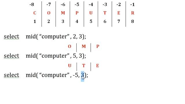 This video lets you know how to use mid() /substring() / substr() function in MySQL