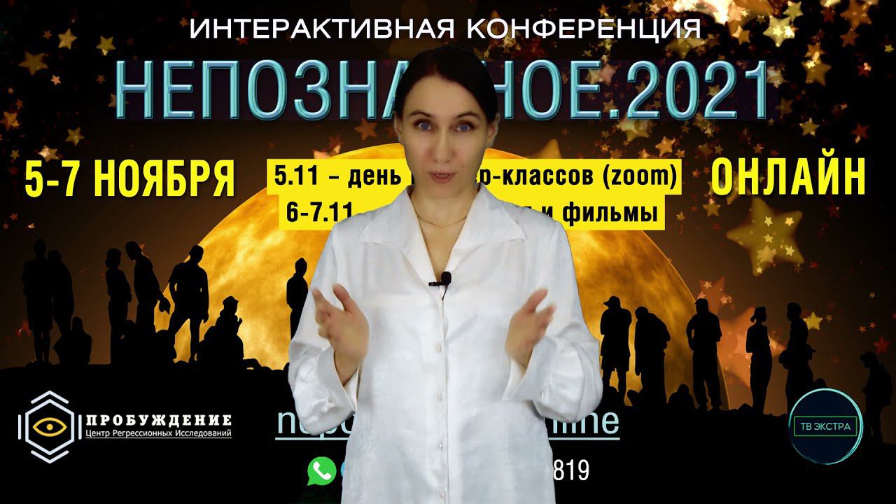 Новые реалии – новые возможности! Интерактивная конференция НЕПОЗНАННОЕ.2021 с 5 по 7 ноября пройдет полностью онлайн! Принять участие в мастер-классах можно по обновленному расписанию (будет доступно с 26 октября на сайте конференции) через систему Зум (Zoom). Запись мастер-классов будет доступна через личный кабинет участника. Принять участие в конференции онлайн можно двумя способами: ➡️ ПО БИЛЕТУ через личный кабинет центра “Пробуждение”. Доступно участие в онлайн трансляции с возможностью обсуждения + фильмы и дополнительные материалы, а также запись трансляции. ➡️ ПО ПОДПИСКЕ 1799 рублей на месяц через YouTube. Доступен онлайн эфир и запись трансляции, но без дополнительных материалов и фильмов. Тем, кто уже приобрел билеты на конференцию, предлагаем поддержать нас и обменять очное участие на онлайн + получить доступ к избранным мастер классам и книгу от центра Пробуждение в подарок с доставкой по России. Для участников VIP будут предложены адресно варианты участия. В 2022 году каждому очному участнику мы предоставим гарантированную скидку 20% на билеты. Ждём вас на конференции в онлайн формате 5, 6 и 7 ноября с 10 до 20 часов. Информация и билеты по ссылке: https://nepoznannoe.online/