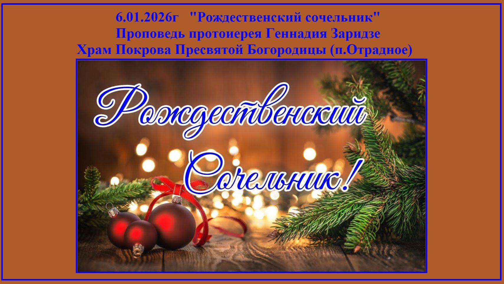6.01.2026г "Рождественский сочельник" Проповедь протоиерея Геннадия Заридзе.Храм Покрова Пресвятой Богородицы (п.Отрадное)