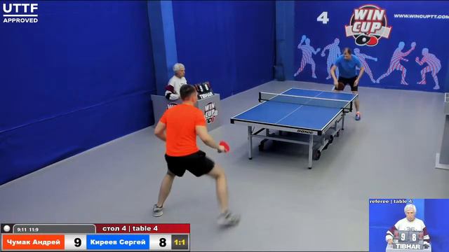 11:30 Чумак Андрей 2-3 Киреев Сергей стол 4 ЮГ-1 09.08.21
