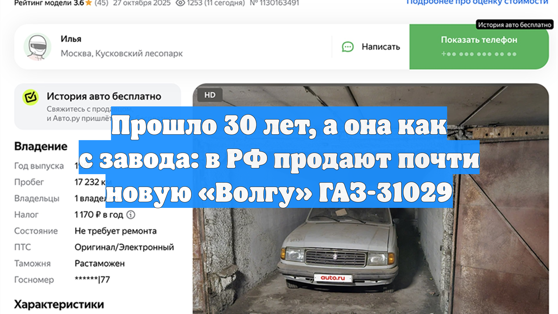 Прошло 30 лет, а она как с завода: на продажу выставили новую «Волгу» ГАЗ-31029