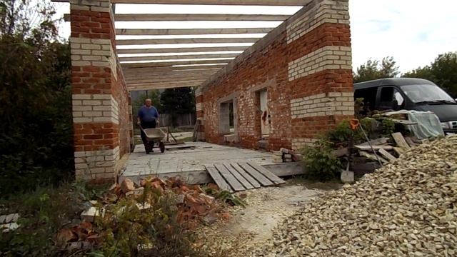 Строительство гаража с подвалом и смотровой ямой собственными силами. Подготовка к монтажу односкатной кровли.