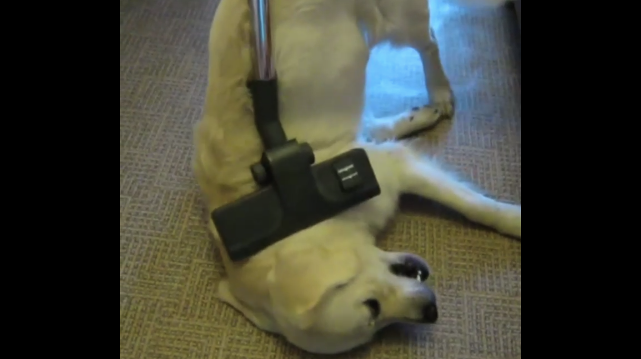 пес не боится пылесоса