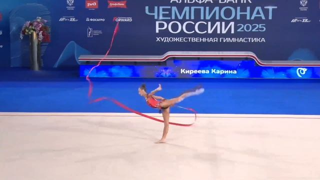 Карина Киреева. Лента Альфа-Банк Чемпионат России по художественной гимнастике 2025 Оценка 25.45 (8). Программа МС. Видео взято с сайта СпортВокруг