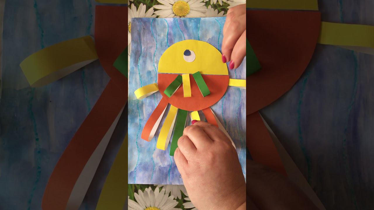 Аппликация из цветной бумаги с элементами рисования