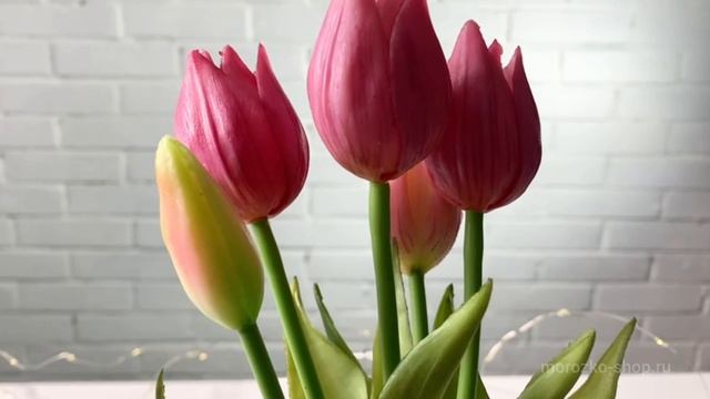 Искусственный букет ТЮЛЬПАНЫ "ОБАЯНИЕ ВЕСНЫ", силикон, сиреневые, 26 см (букет – 5 шт.), 216001-63-1