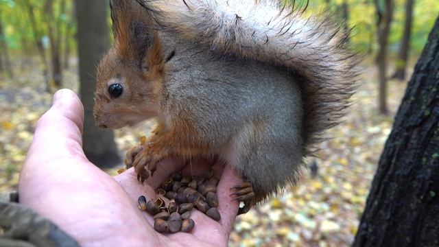 Голодная белка в дождь