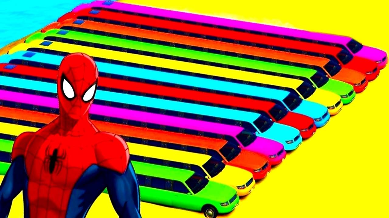 Мультфильм с цветными длинными машинами Человек-паук и супергерои для детей