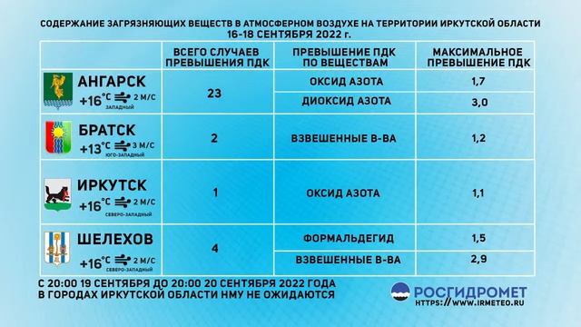 [19.09.2022] Мониторинг состояния атмосферного воздуха 16-18 сентября 2022 года