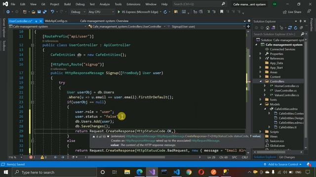 1. Cafe Management System - Login & Signup API of User (Angular, Asp.net - C#, MS SQL Database)