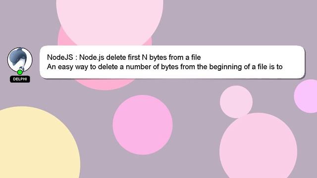NodeJS : Node.js delete first N bytes from a file To Access My Live Chat Page, On Google, Search for "hows tech developer connect" As promised, I'm going to share a hidden feature with you. This is a YouTube's feature which works on Desktop. First, Ensure that the video is playing before proceeding. After that, type the word 'awesome' on your keyboard. It will change your youtube progress bar into a flashing rainbow. Allow me to introduce myself briefly, Hey, I am Delphi. I can help you find the answers you are looking for. NodeJS : Node.js delete first N bytes from a file If you have specific questions that need answers, please don't hesitate to comment or chat with me. Please feel free to leave a comment below if you have an answer or insights on the answer. Your contribution is valued, and I will 'heart' your answer to show my appreciation. Node.js N bytes from a file NodeJS delete first :