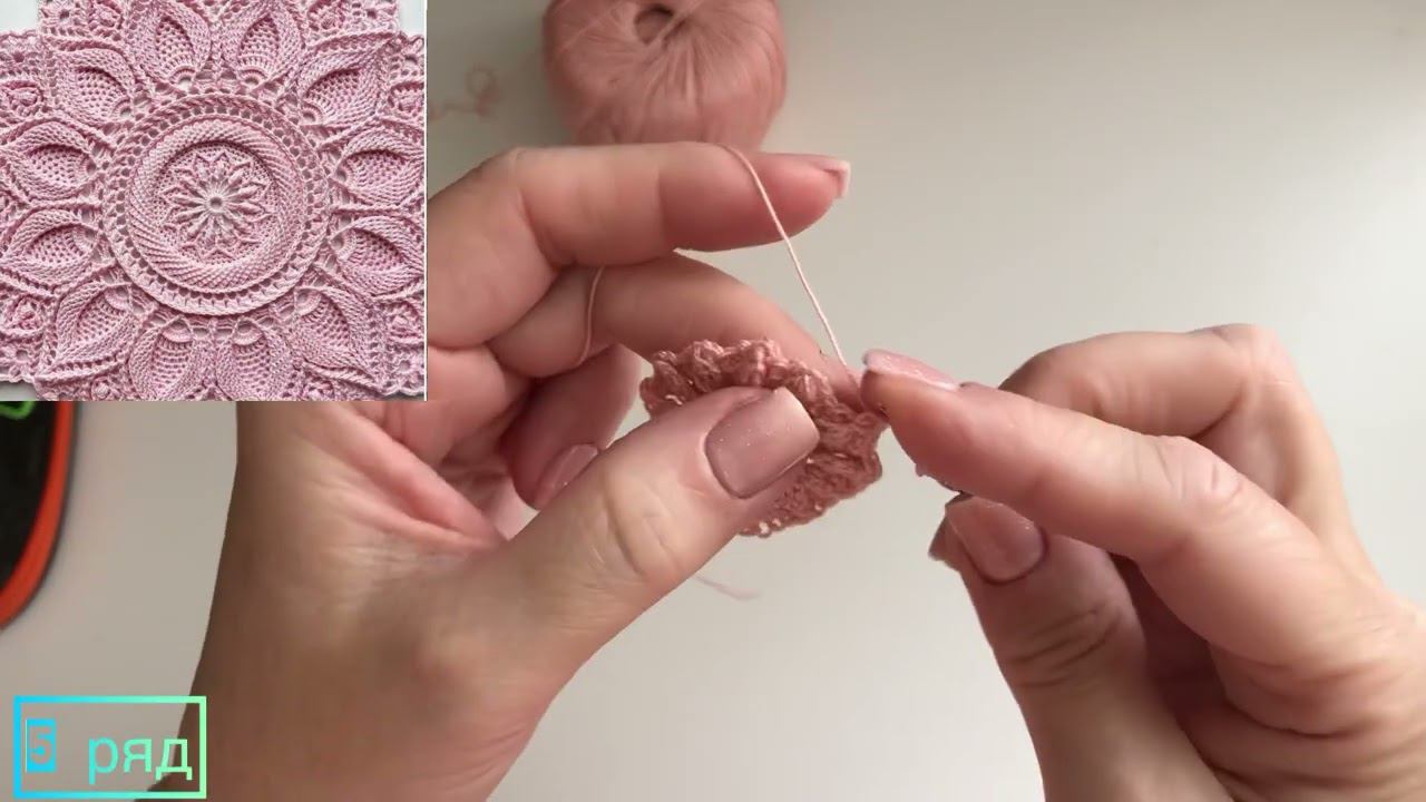 Handmade вязание крючком ажурной рельефной салфетки для начинающих,5 ряд