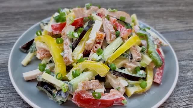 Здравствуйте, уважаемые подписчики и гости моего канала! Очень простой и быстрый рецепт. Салат получается ярким не только по внешнему виду, но и по вкусу. Можно добавить кисло-сладкое яблоко. Отлично подходит для легкого ужина, а можно и на праздничный стол. Готовьте на здоровье! Ингредиенты: 1 огурец; 1-2 болгарских перца (можно взять по половинке паприки разных цветов); 90-100 г сыра; копчено-вареная куриная грудка (~170 г), половинка кусочка; перья зеленого лука; соль, перец по вкусу; 2 ст.л. белого йогурта (сметаны); 1 ч.л. дижонской горчицы в зернах; 1 ст.л. майонеза; Приятного аппетита! Спасибо что, смотрите👀 наши ролики! Если Вам не сложно, подпишитесь🔊 на наш канал, нам будет приятно! Если Вам понравился рецепт, поставьте 💘,сделайте репост;) Для развития канала,поддержите нас пожалуйста🙏 небольшой суммой в размере 1 руб.💲. Вам мелочь, а нам приятно.🌹
