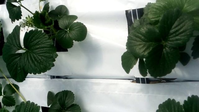 Ягоды наливаются и зреют,прошлогодняя касетная рассада,клубника Альбион