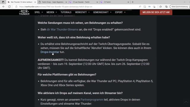 #WarThunder #WarThunderNews #Gratis Aktuell gibt es in War Thunder ein Twitch Drops Event. Dieses geht vom 28.10. bis 31.10. Im Video zeige ich Dir, was Du tun musst, damit Du den Gratis Premium Tag + die Decals erhalten kannst. Viel Spass mit dem Video. Euer Bogi Die Links: https://warthunder.com/en/news/7943-war-thunder-10-years-anniversary-twitch-drops-en https://gss.gaijin.net/ (Der Verknüpfungslink) https://www.twitch.tv/drops/inventory (Inventarlink) Hier die War Thunder Playlist: https://www.youtube.com/playlist?list=PL49O68up-gWkZ3X47nshwTLvMp984ON1k Du suchst noch eine deutsche Gruppe und bist ebenfalls ab Rang 3 unterwegs und aktiv? Ich habe euch meine xGbKx Gruppe in WT geöffnet. Joint sie ruhig. Würde mich riesig freuen. Sollte gerade kein Platz frei sein, schreib mir doch per Discord, oder hier als Kommentar und dann schaue ich was machbar ist :) Du hast War Thunder noch nicht? Hier kannst Du es Dir herunterladen. Es ist kostenlos. Über diesen Link erhälst Du sogar 50 Gold Eagles gratis! http://warthunder.com/en/registration?r=userinvite_8563465 Erscheint auch regelmässig im Stream auf TWITCH.TV https://www.twitch.tv/onkelbogi Hier gehts zum Discord. Folge noch heute! https://discord.gg/uhFkgcwNBw