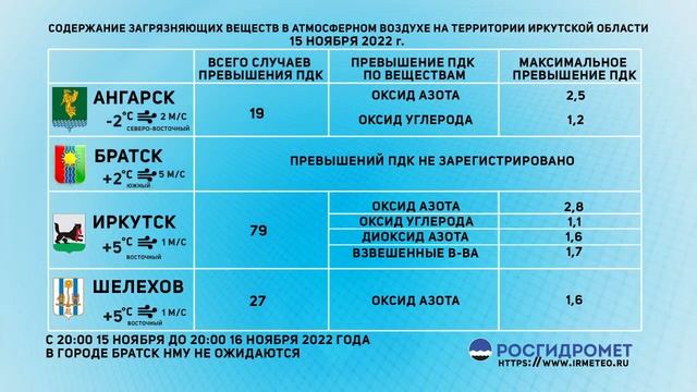 [16.11.2022] Мониторинг состояния атмосферного воздуха 15.11.2022