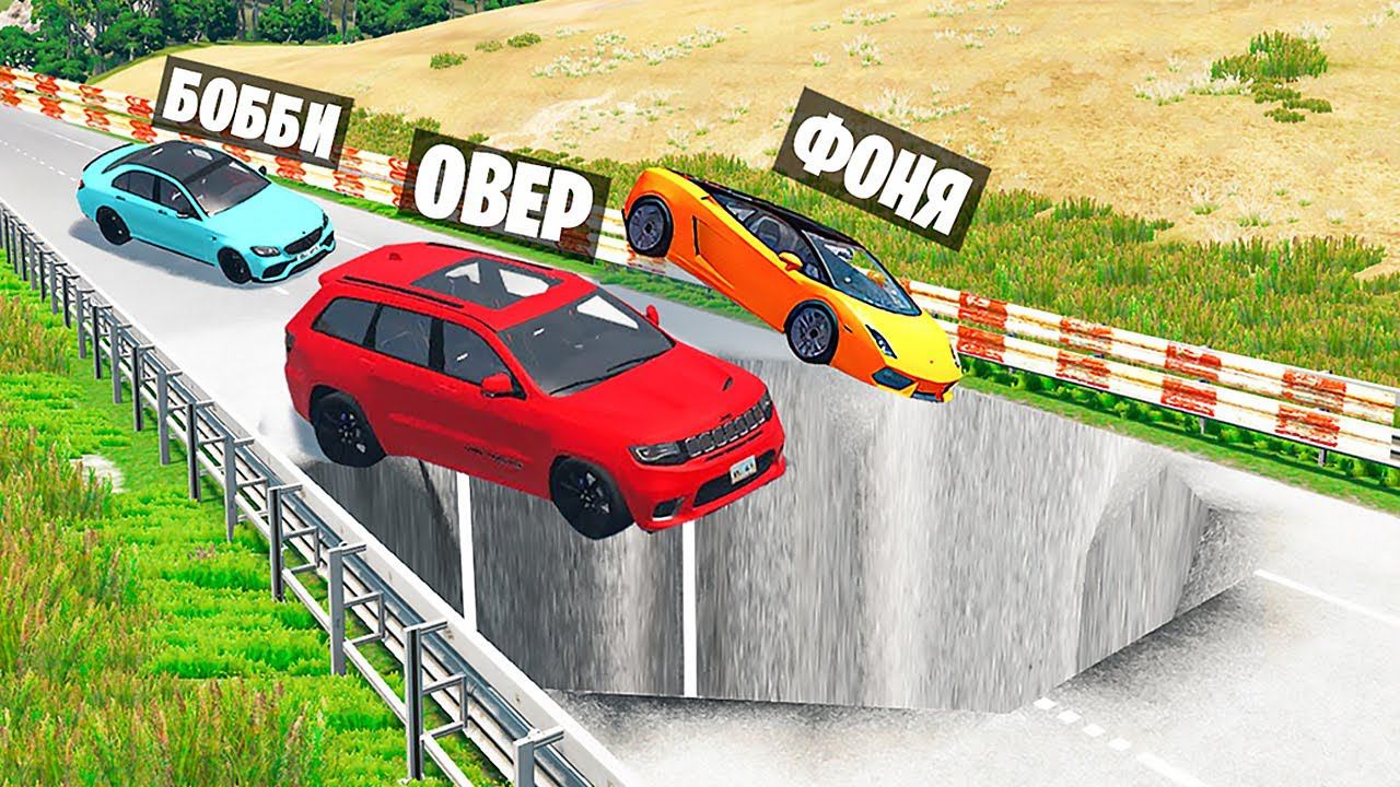 ЗАКРЫТАЯ ТРАССА! ПРЫЖКИ В ОГРОМНУЮ ЯМУ! ПРОВАЛ ДОРОГИ В BeamNG.drive