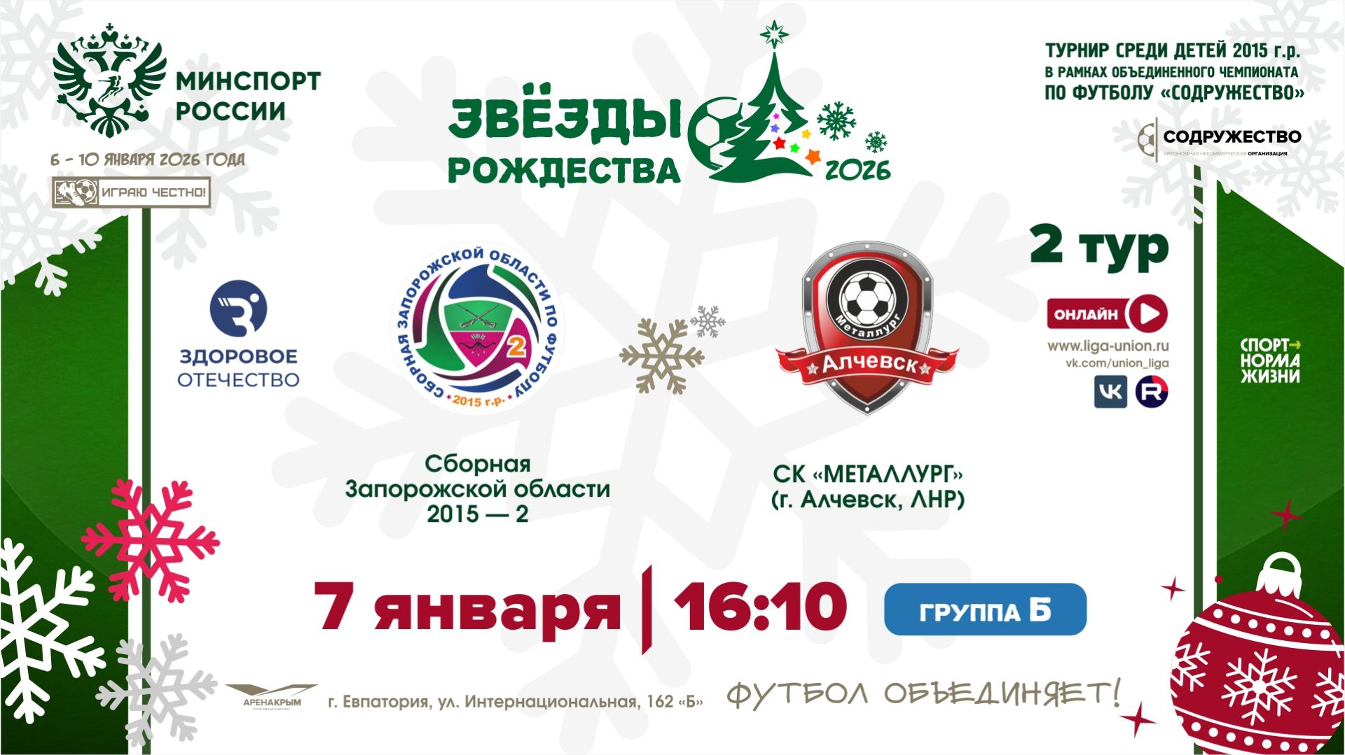 2 ТУР [Б] | Сборная Запорожской области-2 2015 г.р. - СК "Металлург" (г. Алчевск, ЛНР) | 7.01.2026 | 16:10