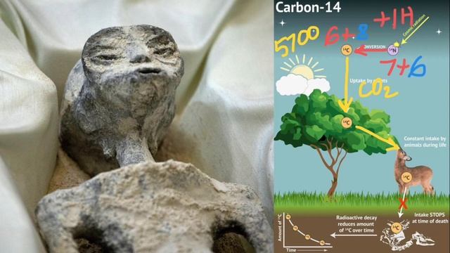 The fossilized bodies presented in glass cases by journalist and UFO scientist Jaime Maussan at Mexico's parliament are said to be 1,000 years old. The bodies of two alleged "alien" beings were exhibited before politicians in a special session of the Mexican Congress on Wednesday. The fossilized bodies, presented by journalist and self-proclaimed UFO scientist - or ufologist - Jaime Maussan and displayed in glass cases, were retrieved from Cusco in Peru and are said to be 1,000 years old. "These specimens are not part of the evolution of our world. They were not recovered from a UFO scrap. They were found fossilized in a diatom moss mine," Maussan said, testifying under oath. Radiocarbon dating, also known as carbon-14 dating or carbon dating, is a widely used method for determining the age of an object containing organic material by measuring the amount of carbon-14 (^14C) it contains. By comparing the ratio of carbon-14 to carbon-12 (or carbon-13) in the sample to the known ratio in the atmosphere, scientists can calculate the age of the sample. radiocarbon dating, carbon-14 dating, carbon dating, dating methods, archaeological dating, scientific dating, carbon isotopes, radioactive decay, half-life, organic material dating, accelerator mass spectrometry, carbon-14 decay, carbon-14 to carbon-12 ratio, calibration, dating accuracy, archaeology, anthropology, geology, dating ancient artifacts, fossils dating, dating geological samples, radiocarbon analysis, carbon-14 isotopes, radiometric dating, age determination, dating techniques, ancient dating methods, scientific measurements, carbon cycle, historical dating, archaeological dating techniques, organic material age, radioactive isotopes, carbon-14 half-life, carbon-14 decay rate, carbon-14 calibration, carbon-14 dating process, dating accuracy and precision, chronology determination, carbon dating applications, dating ancient civilizations. https://www.youtube.com/watch?v=b-PE_dlwES8