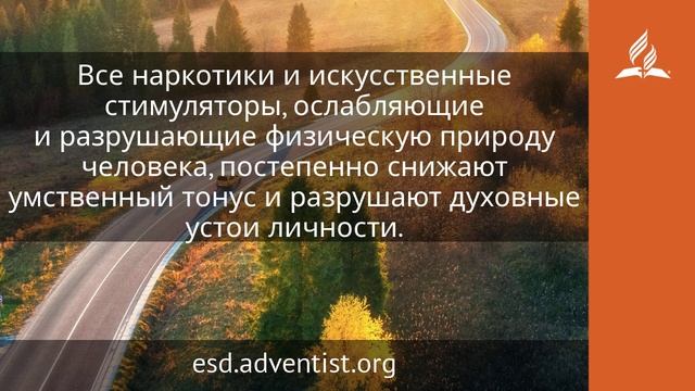 Бойся Господа и удаляйся от зла: это будет здравием для тела твоего и питанием для костей твоих (Притч. 3:7, 8). Вот работа для матерей — помочь детям сформировать правильные привычки и хороший вкус. Воспитывайте аппетит, учите детей с отвращением относиться к возбуждающим продуктам и напиткам. Растите детей так, чтобы они имели нравственную стойкость сопротивляться окружающему их злу. Учите их так, чтобы никто не поколебал их уверенности, чтобы они не уступали более сильному влиянию, но сами по-доброму влияли на окружающих. Большие усилия предпринимаются, чтобы покончить с невоздержанностью, но слишком много сил тратится напрасно. Выступающим за реформу в сфере здоровья необходимо ясно осознать последствия употребления нездоровой пищи, приправ, чая или кофе. Мы говорим «Бог в помощь» всем, кто трудится на ниве пропаганды воздержания, но мы призываем их глубже взглянуть на сущность того зла, против которого они борются, чтобы убедиться, действительно ли они последовательны в реформе. Людям следует постоянно напоминать, что правильное соотношение умственных и нравственных сил в значительной степени зависит от физического состояния организма. Все наркотики и искусственные стимуляторы, ослабляющие и разрушающие физическую природу человека, постепенно снижают умственный тонус и разрушают духовные устои личности. Неумеренность лежит в основе нравственного растления мира. Потакая своим извращенным вкусам и желаниям, человек теряет силу противостоять искушению. Сторонникам реформы предстоит совершить большую работу по обучению людей в данной сфере. Учите их, что использование стимуляторов угрожает здоровью, характеру и даже жизни. Стимуляторы вынуждают истощенные системы организма выжимать из себя энергию для противоестественной деятельности. Что касается кофе, чая, табака и алкогольных напитков, то единственный безопасный путь — не прикасаться к ним, не пробовать и даже не брать их в руки. Чай, кофе и подобные им стимуляторы имеют такое же влияние, как и алкогольные напитки и табак, в некоторых случаях с этой привычкой так же трудно расстаться, как пьющему человеку бросить пить. Люди, пытающиеся оставить стимуляторы, через некоторое время почувствуют, что им чего-то не хватает, и будут страдать без них. Но настойчивостью они преодолеют это страстное желание, и чувство утраты пройдет. Организму может потребоваться какое-то время, чтобы оправиться от злоупотреблений, от которых он страдал, но дайте ему шанс — и он снова воспрянет и будет безупречно выполнять свою работу (Служение исцеления. С. 334, 335). https://esd.adventist.org/library/periodicals/ezhednevnyie-chteniya/ #адвентисты #АдвентистыСедьмогоДня #Церковь #ЦерковьАдвентистовСедьмогоДня #ЦерковьХристианАдвентистовСедьмогоДня
