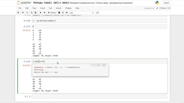 Методы head(), tail() и take() класса Series. Анализ данных Python Pandas