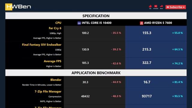 Intel Core i5 10400 vs AMD Ryzen 5 7600 - Gaming & Productivity (RTX 3090 Ti) GAMING BENCHMARK 1 - Rainbow Six Siege 2 - Shadow of the Tomb Raider 3 - CS GO 4 - Far Cry 6 5 - Final Fantasy XIV Endwalker APPS BENCHMARK 1 - Blender 2 - Chromium Code Compile 3 - 7-Zip File Manager 4 - Adobe Premiere Pro 5 - Adobe Photoshop Source: https://hwben.com/intel-core-i5-10400-vs-amd-ryzen-5-7600-gaming-productivity-rtx-3090-ti/ Other benchmark: https://hwben.com BUY FROM AMAZON - Intel Core i5 10400 : https://hwben.com/noindex/buy.php?q=Intel+Core+i5+10400 - AMD Ryzen 5 7600 : https://hwben.com/noindex/buy.php?q=AMD+Ryzen+5+7600 Partner: https://testi.xyz #COREI510400 #RYZEN57600 #HWBen