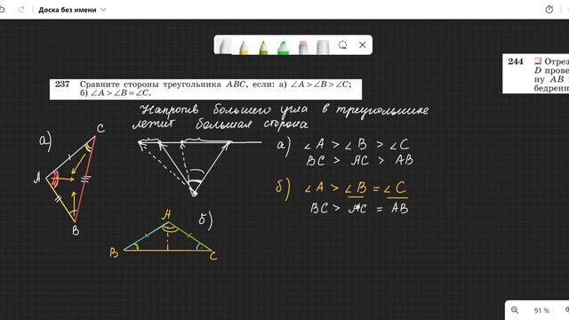 ссылка на Дзене https://dzen.ru/video/watch/64104e9ff89dbc37f8dc5d4d Геометрия 7 класс. Атанасян. Углы и стороны треугольника. Параллельные прямые. 00:00:00 № 237 00:11:36 № 244
