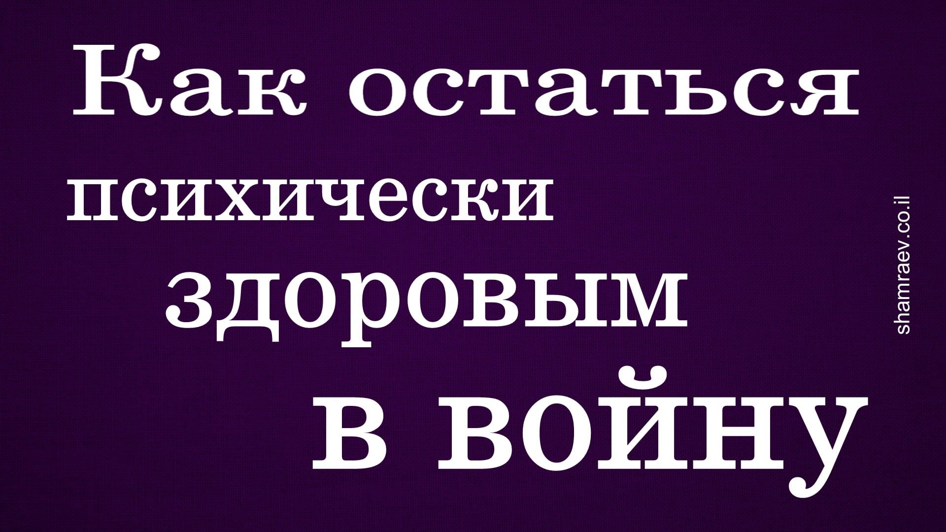 Как остаться психически здоровым в войну (2022) Дополнительную информацию можно получить по скайпу: petrshamraev с 8:00 до 22:00 (время московское) Руководитель Психотерапевтического Исследовательского Центра автор открытия в области медицины психолог-психотерапевт Петр Шамраев Тел: +972-52-529-95-91 Skype: petrshamraev E-mail: petrshamraev@gmail.com Web: http://shamraev.co.il YouTube: https://www.youtube.com/@user-di4oi5lk7q YouTube: https://www.youtube.com/@user-tb6ej6ol2b/videos RuTube: https://rutube.ru/channel/10134425/videos/ Одноклассники: https://ok.ru/kakvylech Вконтакте: https://vk.com/id342874893 Dzen.ru: https://dzen.ru/id/60c06e755fe9c068e6ba4b1d Vimeo: https://vimeo.com/user183147794 Livejournal: https://petrshamraev.livejournal.com/ TikTok: https://www.tiktok.com/@petrshamraev?lang=ru-RU Instagram: https://www.instagram.com/petr._shamraev/ Подпишитесь на мой канал, и вы всегда будете в курсе последних открытий #петршамраев #каквылечитьрассеянныйсклероз #эмоциональныйкапитал