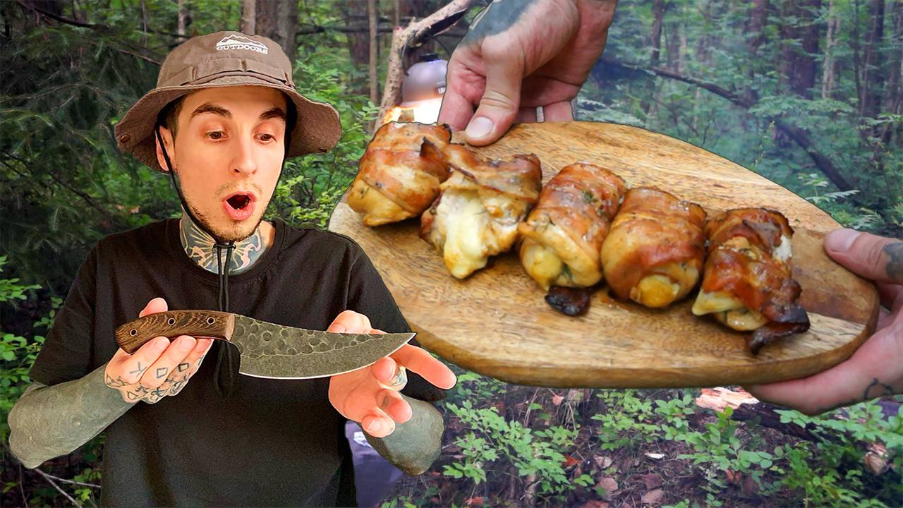 Дикая кухня в лесу: новый рецепт "Ролл Выживальщика" и испытание ножа от AliExpress