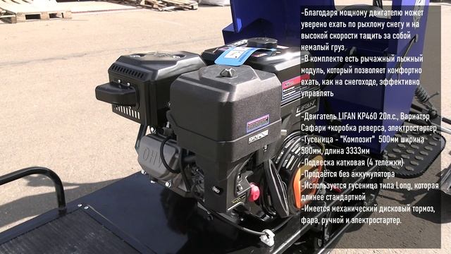 Мотобуксировщик с рычажным лыжным модулем 20 л.с., ЛИДЕР-3-20 (LIFAN KP 460E), гусеница типа LONG.