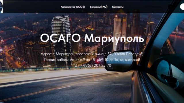 Адрес оформления ОСАГО в Мариуполе пр-кт Ильича 57 (автомагазин Пятая Передача); Тел: +7(925) 925 16-89; ул. Урицкого 63; Сайт: https://osago-mariupol.ru/ (можно оформить самостоятельно); Компании: Астро-Волга, Боровицкое, Согаз, Гелиос, Югория, 21 Век
