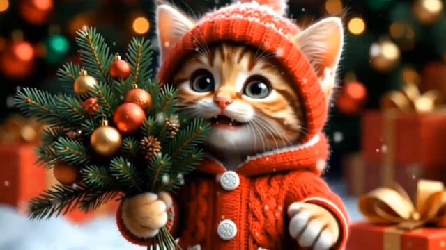 Поздравление с новым годом. Котёнок.