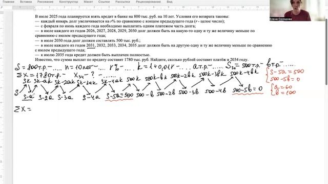 Экономические задачи на профильном ЕГЭ усложняются с каждым годом. Но пока дают только кредиты Теоретически в любой год на основной волне ЕГЭ может появиться и оптимальный выбор (он был на досрочной волне этого года) и вклады, и прочие задачи. Однако по всем прогнозам, в этом году будут задачи именно на кредиты. Текст задачи из разбора: В июле 2025 года планируется взять кредит в банке на 800 тыс. руб. на 10 лет. Условия его возврата таковы: — каждый январь долг увеличивается на r% по сравнению с концом предыдущего года r — целое число); — с февраля по июнь каждого года необходимо выплатить одним платежом часть долга; — в июле каждого из годов 2026, 2027, 2028, 2029, 2030 долг должен быть на какую-то одну и ту же величину меньше по сравнению с июлем предыдущего года; — в июле 2030 года долг должен составлять 500 тыс. руб.; — в июле каждого из годов 2031, 2032, 2033, 2034, 2035 долг должен быть на другую одну и ту же величину меньше по сравнению с июлем предыдущего года; — к июлю 2035 года кредит должен быть выплачен полностью. Известно, что сумма выплат по кредиту составит 1780 тыс. руб. Найдите, сколько рублей составит платёж в 2034 году. Остались вопросы по разбору - пиши в комментариях. Хочешь научиться решать все типы экономических задач - приобретай мой тематический курс. Там есть и кредиты, и вклады, и оптимальный выбор. Ссылки на мои соцсети в шапке профиля.