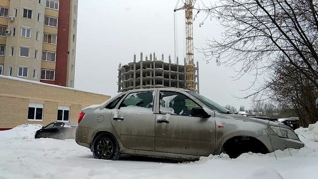 Снегопад 4 марта 2018 Москва и Московская область. Гранта в снегу. Провалился в ямку под снегом