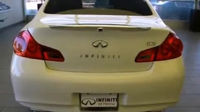 Infiniti of Peoria 9167 W. Bell Road Peoria, AZ�� 85382 Learn More: http://www.infinitiofpeoria.com/new-inventory/2011-Infiniti-G25/4557f6d30a0a00020120b47611c06382.htm?autoplayVideo=true This 4 door, 5 passenger sedan offers the latest in technological innovation and style. Under the hood you'll find a 6 cylinder engine with more than 200 horsepower, providing a smooth and predictable driving experience. Infiniti prioritized practicality, efficiency, and style by including: front and rear reading lights, speed sensitive wipers, a built-in garage door transmitter, heated seats, automatic temperature control, cruise control, and power front seats. Everything is where it ought to be, from the dashboard controls to the door locks and window controls. With high intensity discharge headlights illuminating your path, you'll always appreciate maximum visibility. For drivers who enjoy the natural environment, a power moonroof allows an infusion of fresh air. Audio features include a CD player with MP3 capability, steering wheel mounted audio controls, and 6 well positioned speakers. Infiniti ensures the safety and security of its passengers with equipment such as: dual front impact airbags with occupant sensing airbag, head curtain airbags, traction control, brake assist, anti-whiplash front head restraints, a panic alarm, and 4 wheel disc brakes with ABS. This car was designed with safety in mind, allowing you to drive with even greater assurance. Our sales reps are extremely helpful & knowledgeable. They'll work with you to find the right vehicle at a price you can afford. Call now to schedule a test drive.