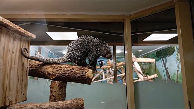 Цепкохвостые дикобразы. Один вышел посмотреть на посетителей, а другой спит в будке 16.12.2025