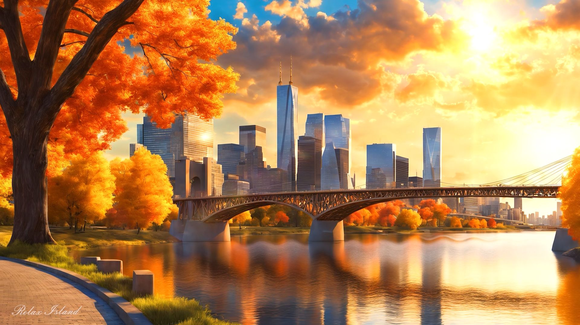Красивая успокаивающая фоновая музыка для сна, в осеннем парке мегаполиса у реки! Хорошо расслабляющая музыка для души и деревья покрытые золотой листвой в солнечный день, создают идеальную атмосферу для релаксации! Сухие каменные тропинки в парке, в дали виднеются высотные городские здания, теплый веторок и музыка для учебы, создают хорошую атмосферу для концентрации внимания. Вообразите, как солнечные лучи пробиваются сквозь золотые листья, мягко играя на водной глади реки. Шёпот ветра в кронах деревьев смешивается с легкими звуками музыки, погружая вас в состояние глубокого покоя и комфорта. Уютные скамейки вдоль берега приглашают присесть и насладиться моментом, оставив позади заботы и усталость. Тишина парка позволяет услышать собственное дыхание, почувствовать ритм сердца и восстановить внутреннюю гармонию. Здесь можно отдохнуть душой и телом, восстановив силы перед новыми свершениями. Природа и музыка становятся вашими верными спутниками, помогая настроиться на позитивный лад и обрести ясность мыслей. Этот парк становится убежищем от городской суеты, местом, где возможно перезагрузиться и вновь ощутить радость бытия. При создании видеоролика была использована музыка: https://pixabay.com/ru/music/study-background-music-438229/ #МузыкаДляДуши #МузыкаДляСна #МузыкаДляМедитации #ЗвукиПрироды #Медитация #ЗвукиДляСна Видео оригинальное, было создано владельцем канала в 3D программах и аудиоредакторах. © Relax Island 2025. Все права защищены.