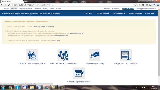 Сайт сервиса CRM АвтоВебОфис (АвтоОфис): https://autoweboffice.ru/?r=acs&id=67&lg=ru «Большое обновление CRM»: Импорт подписчиков и учеников + система контекстных подсказок!