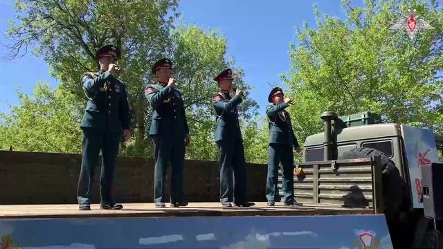 Артисты ансамбля Центрального военного округа поздравили 99-летнего ветерана Сергея Семёновича Ткаченко с наступающим Днём Победы. Концерт прошёл у его дома в селе Николаевка, Луганская Народная Республика. Военнослужащие вручили ветерану памятный адрес и исполнили военные песни. Сергей Семёнович служил связистом с 1942 года и награждён медалями «За отвагу» и «За боевые заслуги», а также орденом Красной Звезды. #80летПобеды 🔹 Минобороны России