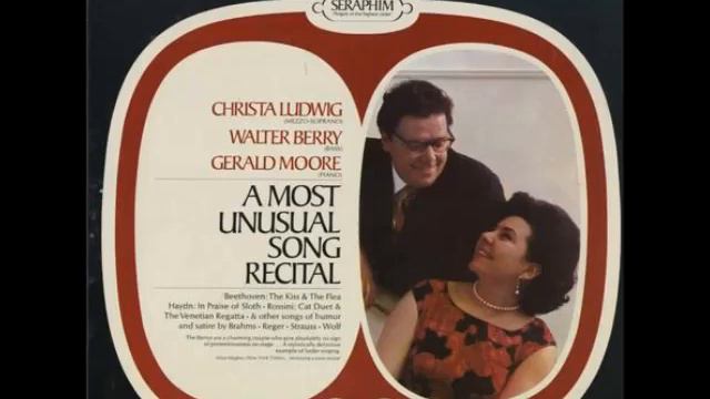 1. Beethoven: Der Kuss 2. Beethoven: Der Floh 3. Haydn: Lob der Faulheit 4. Rossini: Anzoleta avanti la regata 5. Rossini: Anzoleta co passa la regata 6. Rossini: Anzoleta dopo la regata 7. Rossini: Duetto buffo di due gatti 8. Brahms: We kumm ich dann de Pooz erenn? 9. Brahms: Och, Moder, ich well en Ding han 10. Brahms: Vergebliches Ständchen 11. Reger: Der Brief 12. Reger: Waldeinsamkeit 13. Strauss: Schlechtes Wetter 14. Strauss: Ach, weh mir unglückhaftem Mann 15. Wolf: Zur Warnung 16. Wolf: Auftrag 17. Wolf: Bei einer Trauung 18. Wolf: Selbstgeständnis 19. Wolf: Abschied Christa Ludwig Walter Berry Gerald Moore (Piano)