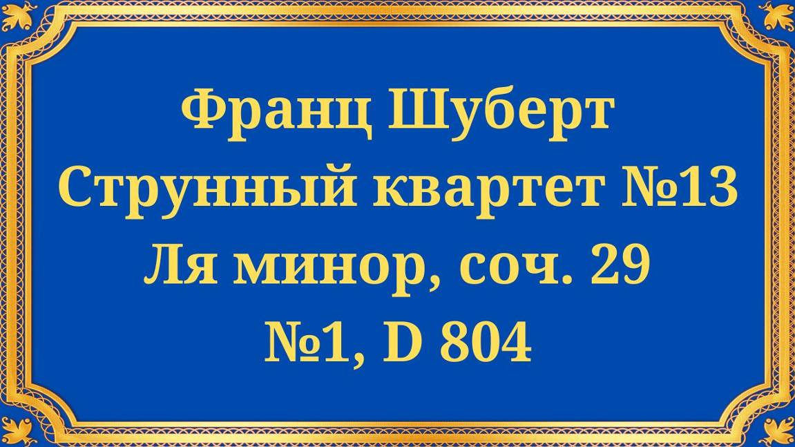 Франц Шуберт Струнный квартет №13 Ля минор, соч. 29 №1, D 804