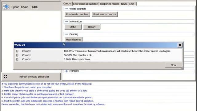 Reset Epson TX 409 Waste Ink Pad Counter