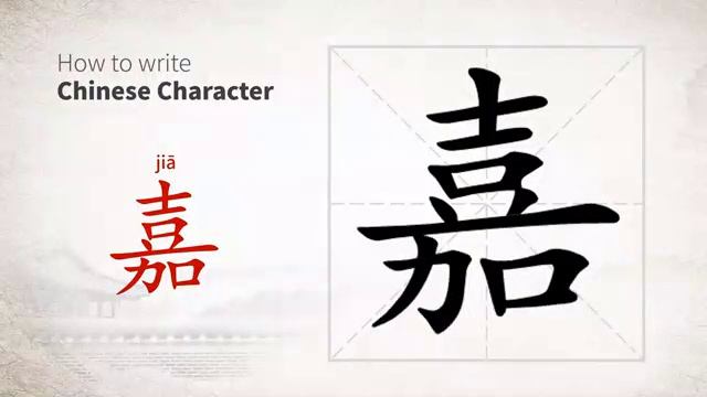 嘉 (jiā) excellent; auspicious; to praise; commend