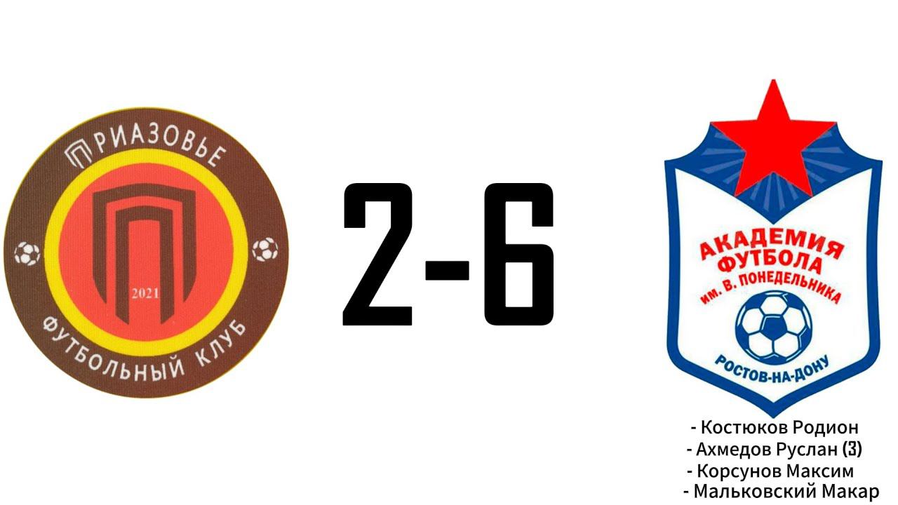 Тайм-коды: 1:22 - 1-ый тайм 1:57 - 0:1 Гол забил Костюков Родион 10:10 - 1:1 Гол забила команда приазовье 11:14 - 1:2 Гол забил Ахмедов Руслан 20:41 - 2:2 Гол забила команда приазовье (пенальти) 26:28 - 2-ой тайм 35:06 - 2:3 Гол забил Ахмедов Руслан (дубль) 38:04 - 2:4 Гол забил Ахмедов Руслан (хет-трик) 38:43 - 2:5 Гол забил Корсунов Максим 44:53 - 2:6 Гол забил Мальковский Макар