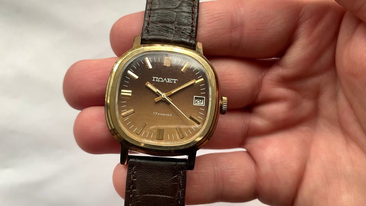 Видеообзор на позолоченные часы «Полёт» с красивым тонированным циферблатом 1-го Московского часового завода 1980-х годов.