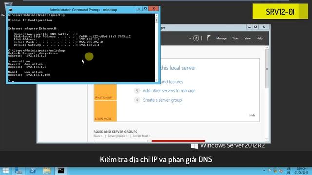 NCT || Hướng dẫn xây dựng mô hình Cân Bằng Tải - Network Load Balancing Yêu cầu: • Trên Server SRV12-01 và SRV12-02: - Tạo dữ liệu và nội dung Website đặt trên ổ C. - Cài đặt Web Server (IIS) role. - Tạo Hosting Website trên IIS. - Cài đặt và cấu hình Network Load Balancing. • Trên Server DC12-01: - Cài đặt, cấu hình DNS Server. - Tạo bản ghi trên DNS Server để phân giải Website với tên miền www.uit.vn có địa chỉ là 192.168.1.100 • Kiểm tra sau khi thiết lập: - Trên máy Client WRK08-01 truy cập vào website www.uit.vn - Thực hiện tắt máy SRV12-01, trên Client vẫn truy cập lại Website thành công. Chuẩn bị: - Máy Server DC12-01 đã nâng cấp lên Domain Controller, quản lý miền uit.vn. - Máy Server SRV12-01 cài đặt và cấu hình Web IIS. - Máy Server SRV12-02 cài đặt và cấu hình Web IIS. - Máy Client WRK08-01 dùng để kiểm tra. Thực hiện 1. Tắt firewall cho các máy 2. Trên máy DC12-01, thực hiện cấu hình DNS Server, tạo bản ghi phân giải tên miền Web Server www.uit.vn 192.168.1.100. 3. Chuyển sang máy Server SRV12-01 cài đặt IIS (Web Server) và Network Load Balancing 4. Tương tự cài đặt IIS và Network Load Balancing cho máy Server SRV12-02 5. Chuyển qua máy SRV12-01, cấu hình Network Load Balancing. 6. Sau khi cấu hình dịch vụ ta khởi động lại hệ thống, chỉnh Options ở dạng Application: Mainternance (Planned). 7. Chuyển sang máy WRK08-01, truy cập Website để kiểm tra 8. Chuyển qua máy Server SRV12-02, tắt card mạng. 9. Chuyển qua máy WRK08-01, truy cập Website để kiểm tra lại.