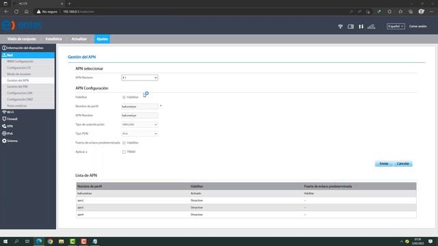 eN ESTA ocacion vamos realizar unas configuraciones para que nuestro router ZTE pueda leer cualquier chip. LISTA DE APN: CLARO Nombre: Claro Internet (o cualquier nombre) APN: claro.pe Opcional Nombre de usuario: claro Contraseña: claro Autentificacion: PAP o CHAP MOVISTAR Nombre: Movistar Internet (o cualquier nombre) APN: movistar.pe Opcional Nombre de usuario: movistar@datos Contraseña: movistar Autentificacion: PAP o CHAP ENTEL Nombre: Entel Internet (o cualquier nombre) APN: entel.pe Autentificacion: PAP o CHAP BITEL Nombre: Bitel Internet (o cualquier nombre) APN: bitel ó bitel.pe Opcional Tipo de autenticación: CHAP Nombre de usuario: bitel Contraseña: bitel
