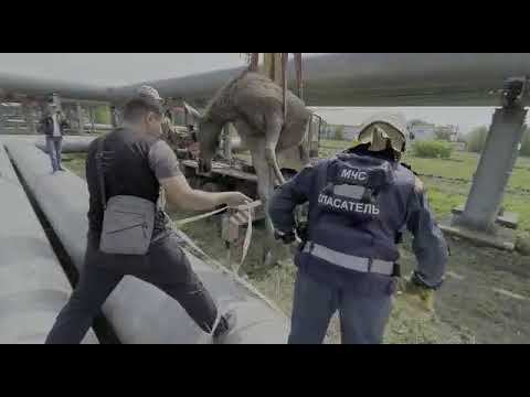 Спасатели при помощи автокрана извлекли лосëнка, зажатого трубами теплотрассы