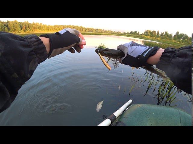 СПИННИНГ - поверхностные приманки по мелководью. Ловля на ПОППЕРЫ. TOPWATER Когда знаешь озеро рыбалка всегда удачная. Не смотря на слом погоды 11 рыб на борту. Ветер и дождь. Заплыл в 5:30 выплыл в 10:00 . Рыба активна когда она есть. Миллион выходов, десятки сходов. Про место можно не спрашивать
